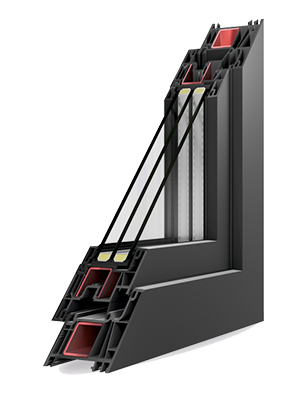 Dezvoltarea unui sistem cu proprietăți optime de termoizolare nu este accidentală, ci este rezultatul unor lucrări de dezvoltare orientate către rezultate. Succesul nostru confirmă acest lucru. Numeroase calcule au demonstrat coeficienți excelenți în ceea ce privește termoizolarea. De la început, obiectivul de dezvoltare a fost reprezentat de atingerea unui coeficient Uf – 0,92 W/m²K pentru termoizolare în combinația standard cu oțel și astfel, compatibilitatea cu locuințe pasive. Acest lucru este posibil datorită tuturor detaliilor inovatoare care alcătuiesc sistemul.